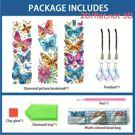 Diamond Art bookmark kit is a craft kit, ideal for children and adults, which enable you to make your own sparkly and beautiful diamond keyring. The technique is similar to painting by numbers. Each diamond bookmark design has a numbered, adhesive template. Using the drill pen (included), simply lift up the coloured drills and place them on the corresponding numbered dots. They affix instantly! The technique is relaxing and therapeutic, and the result is a beautiful piece of rhinestone art which you can gift to loved ones. Making a book takes 30-45 minutes. They are suitable for ages 6 and up.